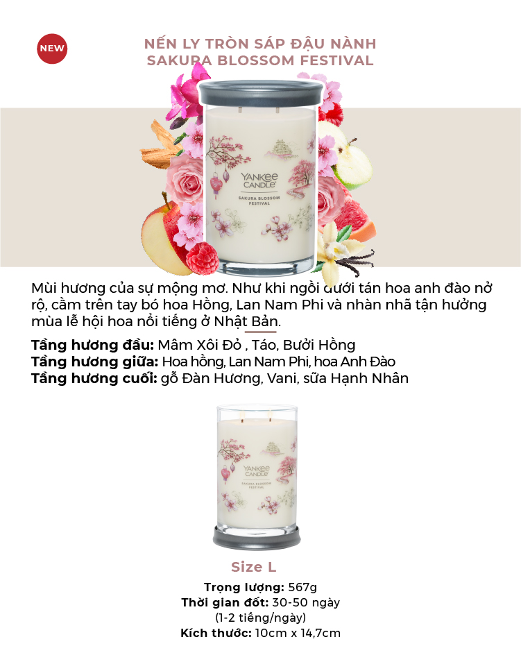 ✨Nến ly tròn sáp đậu nành Yankee Candle size L (567g) - Sakura Blossom Festival