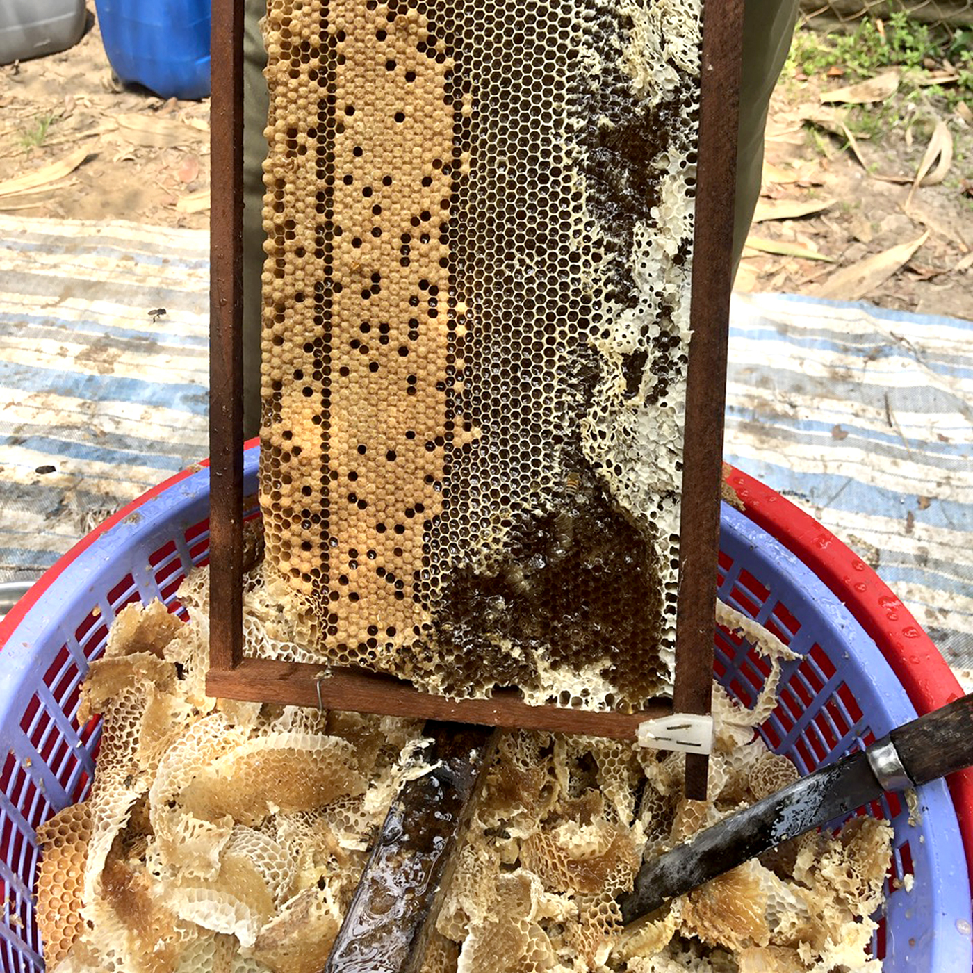 Nến Thơm Sáp Ong được làm từ sáp ong nguyên chất 100% thu hoạch từ trang trại nuôi ong lấy mật, quá trình nung nấu và lọc tạp chất đến khi đổ khuôn làm nến,