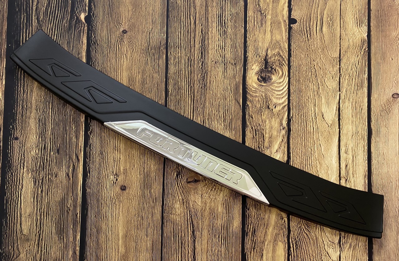 • Nẹp chống trầy cốp sau xe Fortuner được thiết kế ôm sát vào cản sau xe, được trang bị miếng ốp Inox ở giữa nẹp để tạo điểm nhấn và nẹp chống trầy được vẽ thêm đường kẽ để không gây nhàm chán và tạo điểm nhấn.