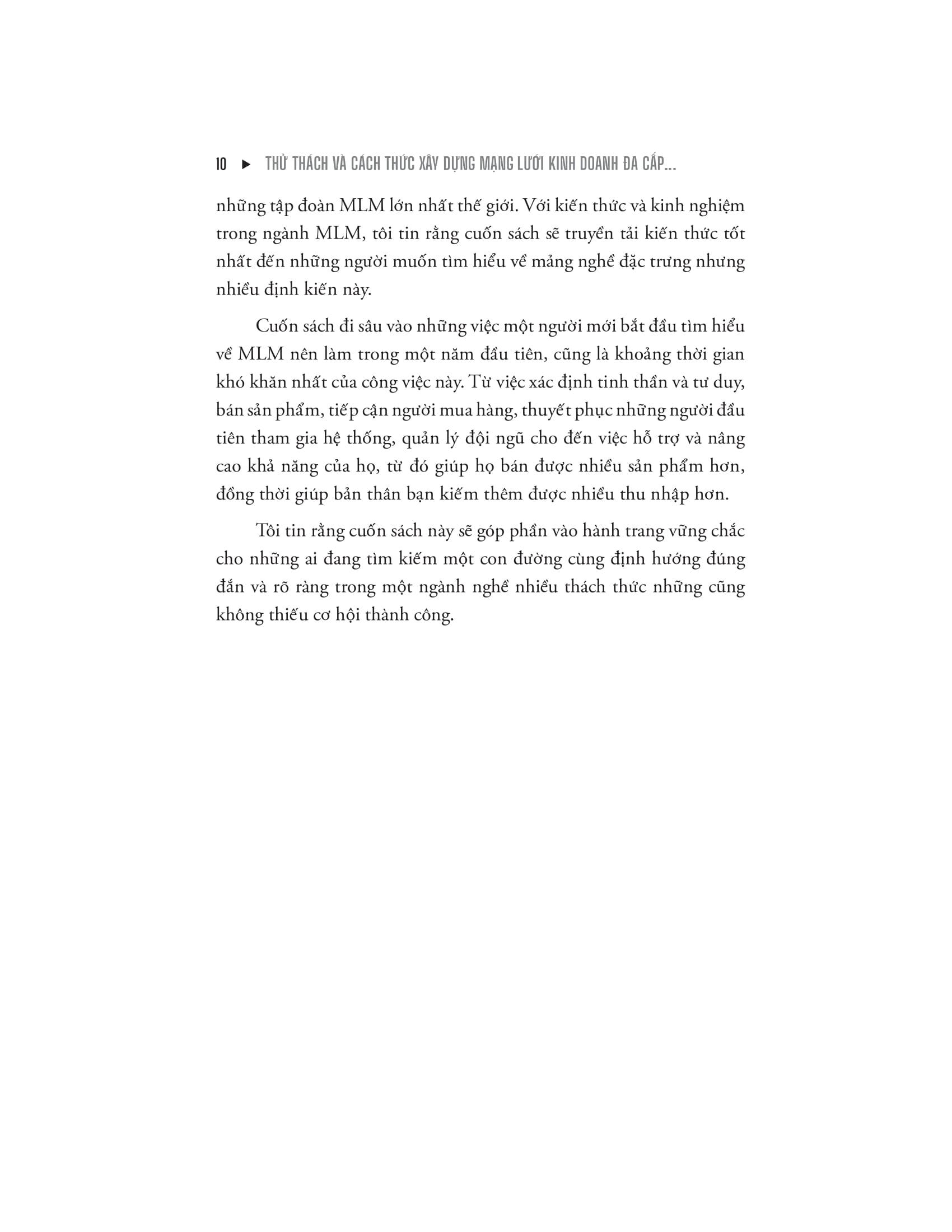"Network Marketing - Khởi Đầu Kinh Doanh Theo Mạng: Bí Quyết Thành Công Trong Năm Đầu Tiên" tập trung vào việc giúp những người mới bắt đầu tham gia ngành kinh doanh theo mạng lưới vượt qua những khó khăn ban đầu. Cuốn sách cung cấp các chiến lược thực tiễn, lời khuyên cụ thể, và những câu chuyện thành công nhằm giúp người đọc xây dựng được nền tảng vững chắc cho sự nghiệp của m.ình.
