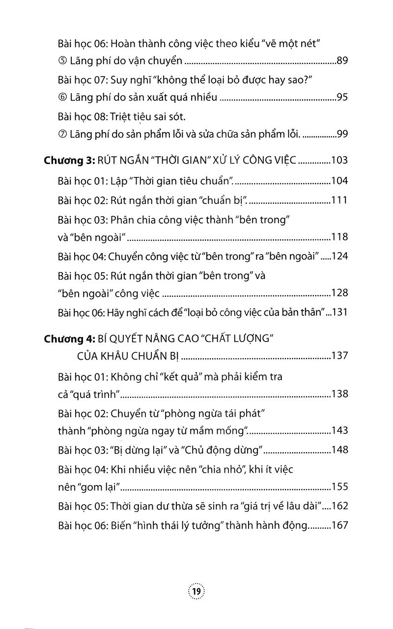 Nền tảng của khả năng rút ngắn thời gian sản xuất xuống mức tối đa là trí tuệ đã được tính luỹ trong một thời gian dài và từ năng lực chuẩn bị và sắp xếp công việc mà nhân viên Toyota đã áp dụng trong công xưởng.”