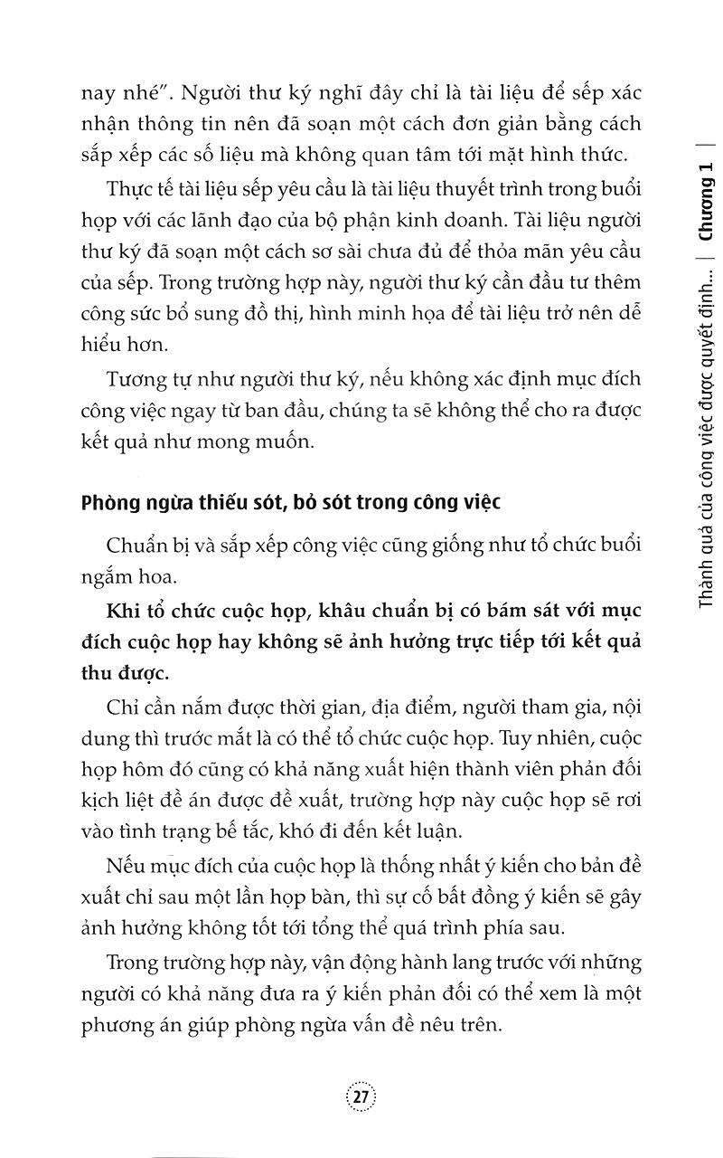 Chuẩn bị công việc không phải là phương pháp chỉ để hoàn thành sớm công việc mà là những know-how (bí quyết) vừa giúp nâng cao tốc độ, vừa duy trì chất lượng của công việc, từ đó nâng cao thành quả đạt được.