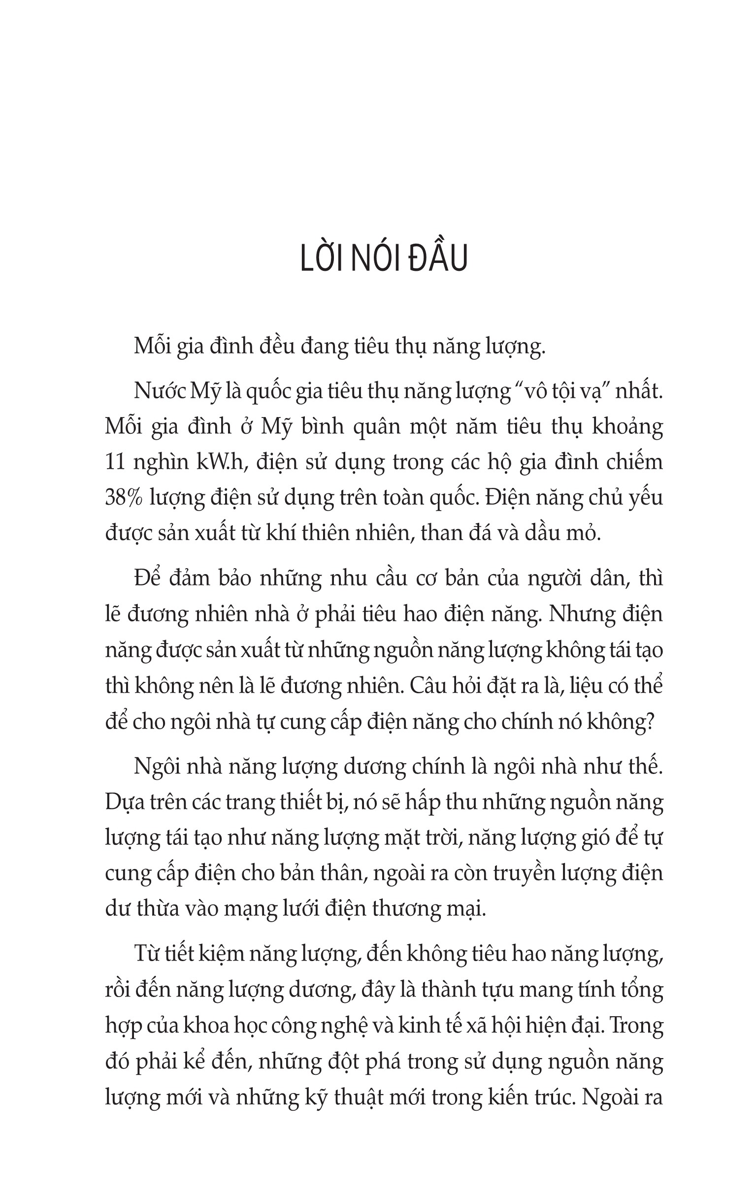 Từ tiết kiệm năng lượng, đến không tiêu hao năng lượng, rồi đến năng lượng dương, đây là thành tựu mang tính tổng hợp của khoa học công nghệ và kinh tế xã hội hiện đại. Trong đó phải kể đến, những đột phá trong sử dụng nguồn năng lượng mới và những kỹ thuật mới trong kiến trúc. Ngoài ra còn có hàng loạt những nghiên cứu và phân tích, chẳng hạn đánh giá một cách chính xác tình hình tiêu hao năng lượng của công trình kiến trúc truyền thống và công trình kiến trúc kiểu mới, sử dụng mô hình máy tính để dự đoán tiêu hao năng lượng khi công trình kiến trúc vẫn còn ở trên bản vẽ. Đương nhiên, bạn cũng cần phải tính đến việc xây dựng một căn nhà như thế cần bỏ ra bao nhiêu tiền.