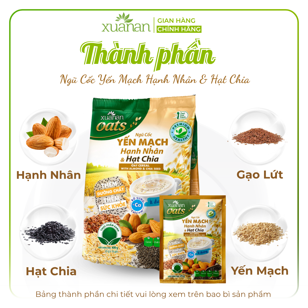 ✨Ngũ Cốc Yến Mạch Hạnh Nhân Hạt Chia Xuân An [ít đường] Túi 400G {25g*16 gói}(Tặng Kèm 1 Túi Yến Mạch 150G)