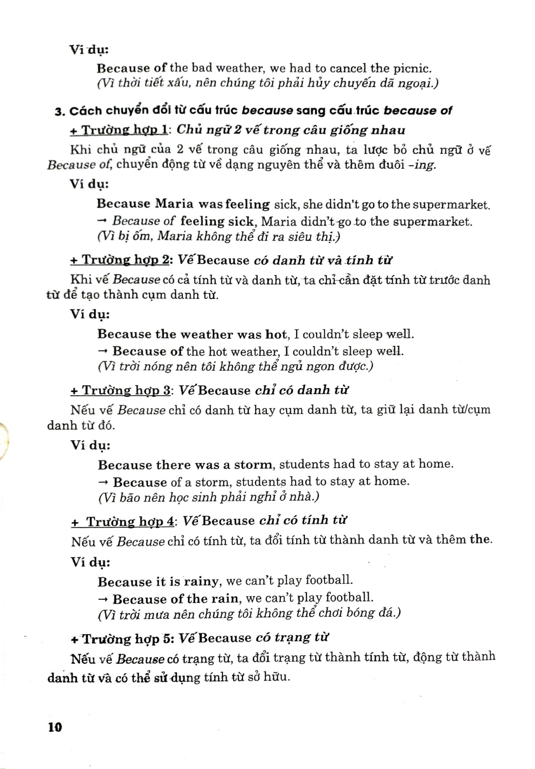 Sách bao gồm nhiều chủ điểm ngữ pháp và bài tập thực hành để các em học tập, rèn luyện và trau dồi kiến thức ngữ pháp tiếng Anh. Các chủ điểm ngữ pháp bám sát nội dung trong sách giáo khoa, ngoài ra còn được mở rộng thêm để các em nắm vững hơn về cách dùng động từ nguyên mẫu có to (to-infinitive); Cụm động từ (Phrasal verb); Mệnh đề trạng ngữ/cụm trạng ngữ chỉ lý do (Adverbial clauses/phrases of reason); Ôn tập về cách dùng “Would”; Cách dùng “Used to”; Mệnh đề quan hệ xác định (defining relative clause) với đại từ quan hệ.; Cách dùng “wish” với thì quá khứ đơn (past simple); Câu tường thuật (Reported speech); Cách dùng “could” và các từ hỏi (wh-words) trước to-infinitive; Cách dùng suggest + gerund (danh động từ); Mệnh đề trạng ngữ/cụm từ chỉ sự nhượng bộ; Cấu trúc so sánh hơn với các từ nhấn mạnh; Cách dùng cấu trúc động từ + danh động từ (verb + gerund); Cách dùng mệnh đề quan hệ không xác định; Thì quá khứ tiếp diễn (Past Continuous); Cách dùng các mệnh đề trạng ngữ chỉ kết quả (adverbial clauses of result); Câu điều kiện loại 1 với động từ khiếm khuyết (First Conditional with modal verbs); Cách dùng cấu trúc “Động từ + to infinitive”.