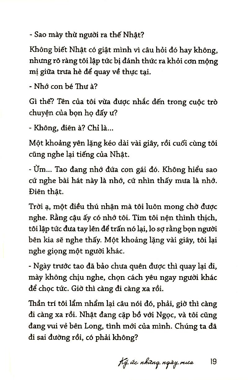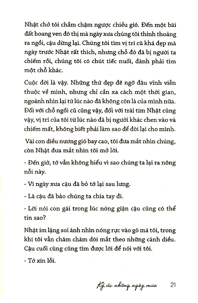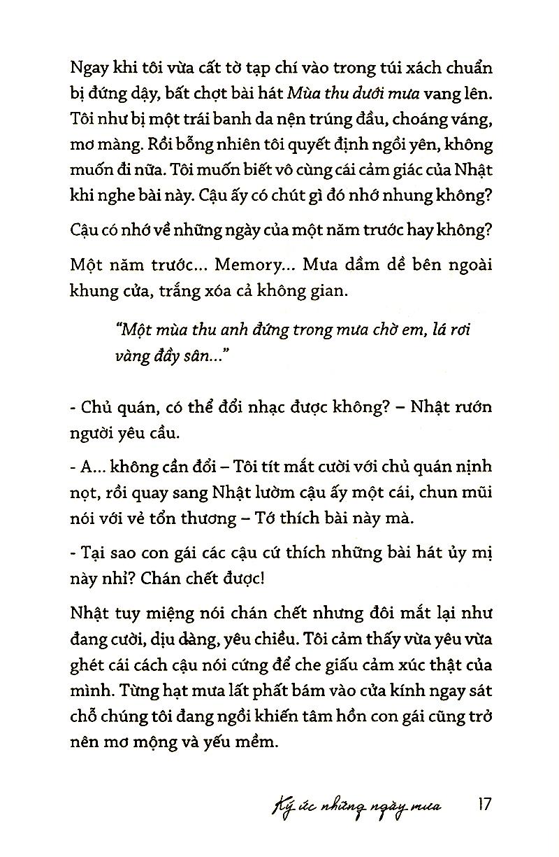 Quán trà Ký Ức là một quán nước nhỏ được dựng bằng gỗ, tọa lạc ở lưng chừng chặng đường của cuộc viễn du. Quán trà kỳ lạ này chỉ bắt đầu mở cửa hoạt động vào lúc trời tắt nắng, và duy nhất một cô gái trẻ có gương mặt khả ái với mái tóc màu khói tết thành bím dài thả sang một bên, là chủ nhân đồng thời là người phục vụ, đợi bạn dừng chân ghé vào ngơi nghỉ, sẽ thong thả vừa pha chế vừa kể cho bạn nghe vài câu chuyện tình nơi đó chốn đây.