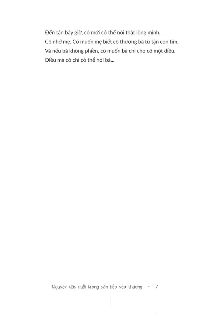 Nguyện ước cuối trong căn bếp yêu thương là tác phẩm thứ 2 của tác giả Ibuki Yuki. Tác phẩm đã nhận được sự quan tâm khá lớn từ độc giả nhờ việc khai thác đề tài tình cảm gia đình. Cũng nhờ đó mà tác phẩm đã được chuyển thể thành phim truyền hình và phim điện ảnh với những tình tiết cảm động về tình cảm vợ chồng, tình mẹ con, tình cha con.