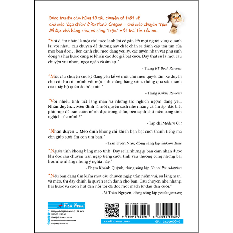“Với nhiều tình tiết lãng mạn và những trò nghịch ngợm đáng yêu, ‘Nhân duyên Mèo định’ là một cuốn sách nhẹ nhàng và ấm áp, đặc biệt phù hợp để bạn cuộn mình đọc trong chăn, bên cạnh chú mèo cưng tinh nghịch của mình!” - Tạp chí Modern Cat