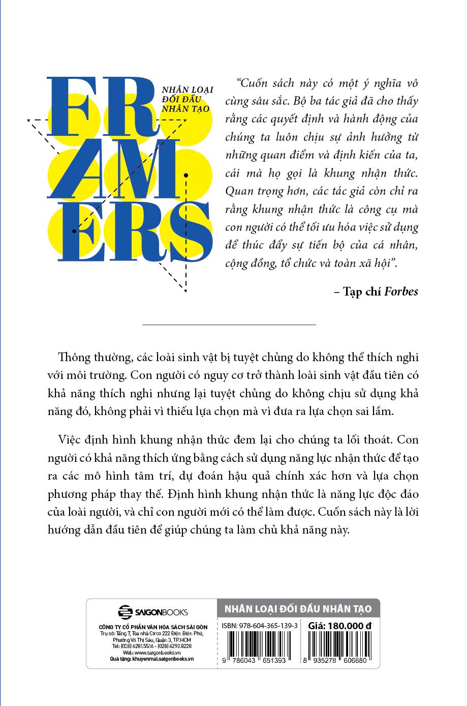 Từ đại dịch đến chủ nghĩa dân túy, AI đến ISIS, bất bình đẳng giàu nghèo đến biến đổi khí hậu, nhân loại phải đối mặt với những thách thức chưa từng có đe dọa sự tồn tại. Công cụ thiết yếu giúp nhân loại tìm ra cách tốt nhất để đi tiếp được các tác giả nổi tiếng thế giới Kenneth Cukier, Viktor Mayer-Schönberger và Francis de Véricourt định nghĩa trong cuốn sách Framers: Human Advantage in an Age of Technology and Turmoil.