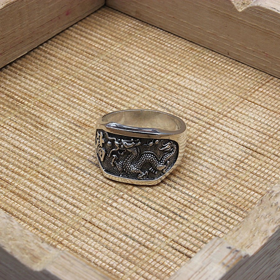 Chất liệu Thân Nhẫn: Hợp kim Titanium Chất liệu đá: Đá Zircon nhân tạo, kiểu dáng kim cương Thiết kế: Khắc rồng trên thân và mặt nhẫn, tinh xảo, chi tiết. Công dụng: Trang sức,