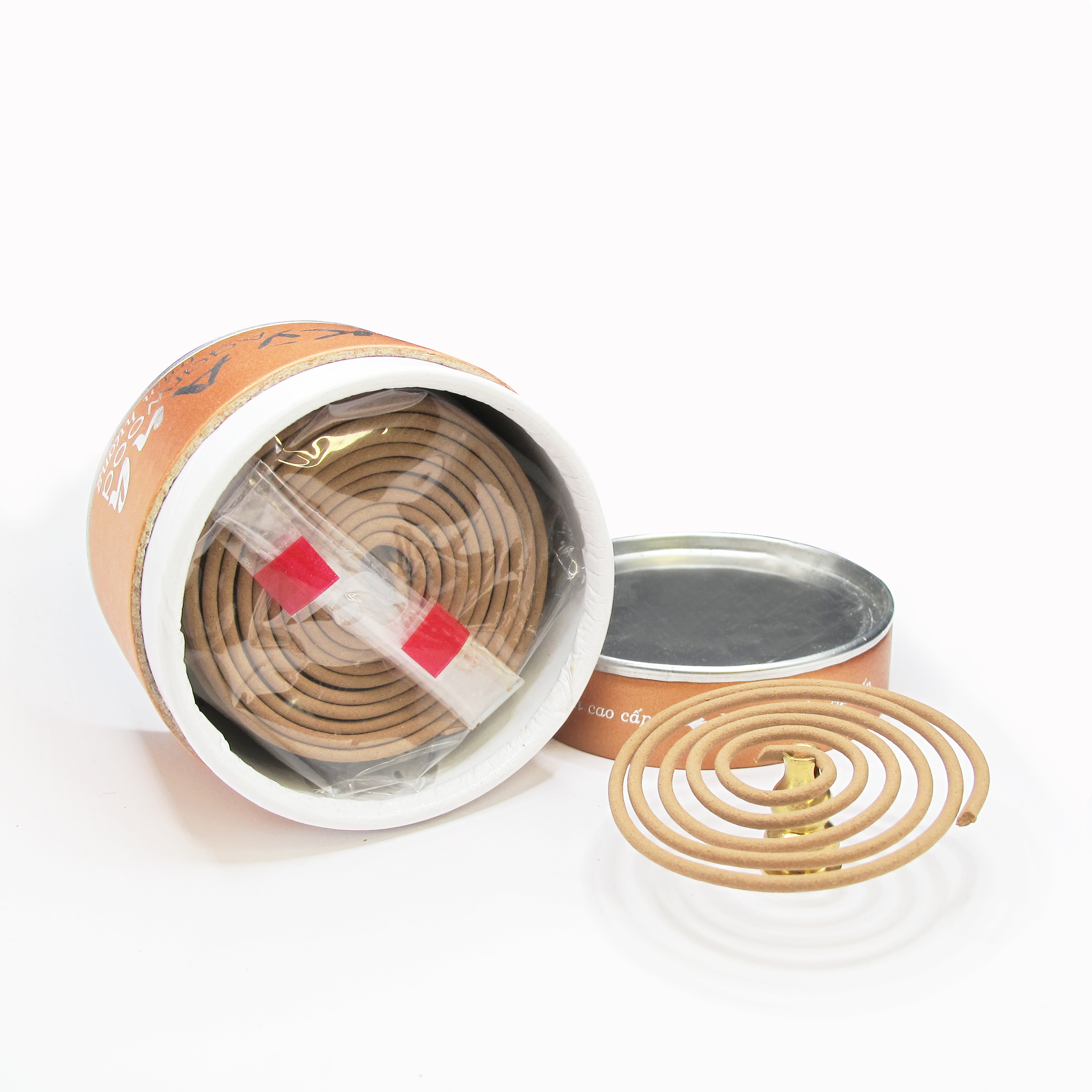 Giới thiệu nhang vòng trầm hương Nhang vòng trầm hương được làm từ bột trầm hương nguyên chất kết hợp với keo bời lời tự nhiên. Sau đó được nén thành hình vòng xoắn ốc,