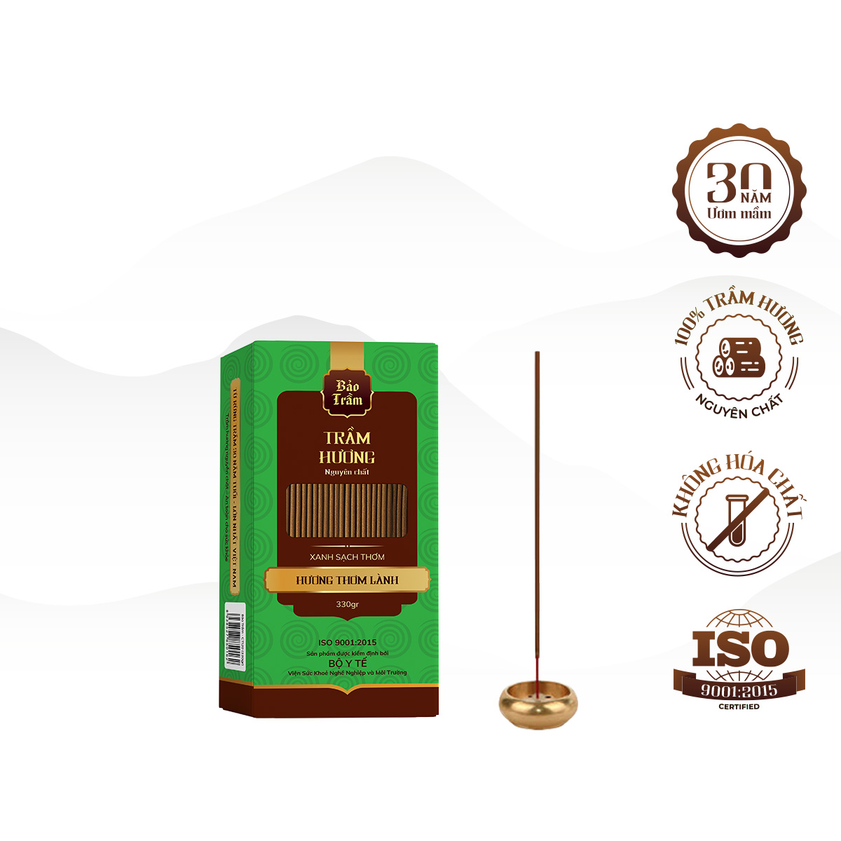Nhang Trầm Hương Phổ Thông 38cm – Hộp Xanh Lá 600g đến từ thương hiệu Bảo Trầm, là lựa chọn tối ưu cho nhu cầu thắp hương bàn thờ tổ tiên, thần tài và xông thanh tịnh không gian sống.
