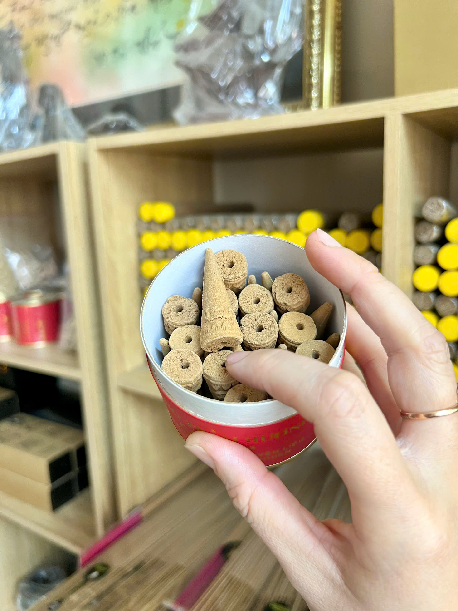 Trầm nụ viên ngát hương thơm dùng để xông cửa hàng, nhà ở, cơ Mùi thơm dễ chịu, thoang thoảng Mỗi sáng đốt 1 viên cho ông địa cả ngày đón lộc Giá: 470k/ hộp