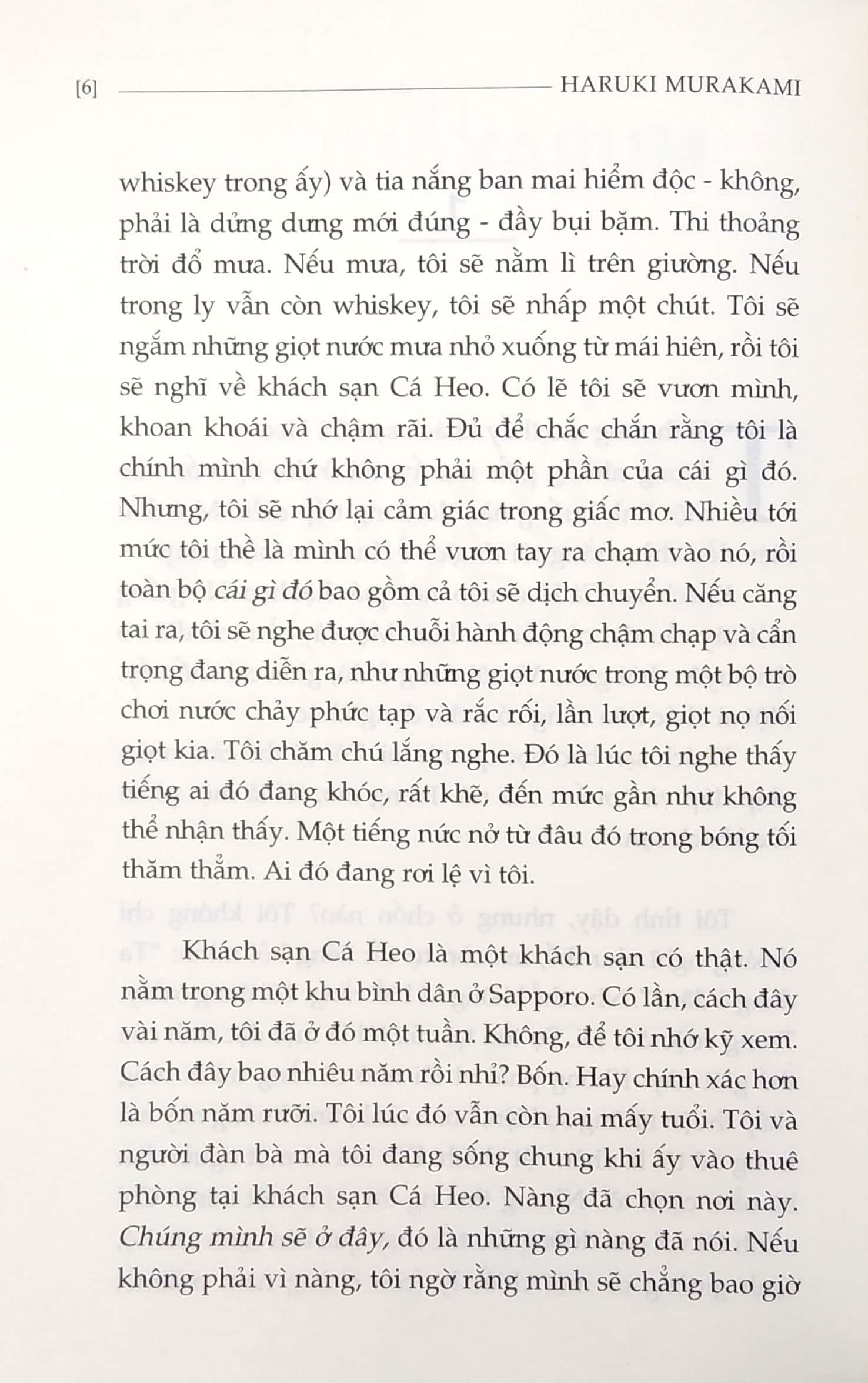 Một ám ảnh khôn nguôi về một chốn vừa xác định vừa bí ẩn - Khách sạn Cá Heo, cùng tiếng khóc âm u não nuột của một người đàn bà trong bóng tối của giấc mơ: chừng đó là đủ để lôi chàng trai xưng tôi - nhân vật chính của chúng ta - vào một cuộc phiêu lưu mới, nơi anh sẽ vừa chứng kiến vừa bị dính mắc vào một mê cung của những cái chết bất ngờ và những vận hành của một thứ mưu đồ có sẵn mà nhiều lúc hình như quá mạnh, không thể hiểu so với anh. Và trong cõi mê cung ấy anh gặp lại Người Cừu, gặp những con người anh chưa bao giờ nghĩ là sẽ gặp, và rồi sẽ cố hết sức tìm lại người đàn bà từng có lúc anh yêu, sẽ làm tất cả những gì trong sức mình để cứu nàng, để níu giữ nàng…