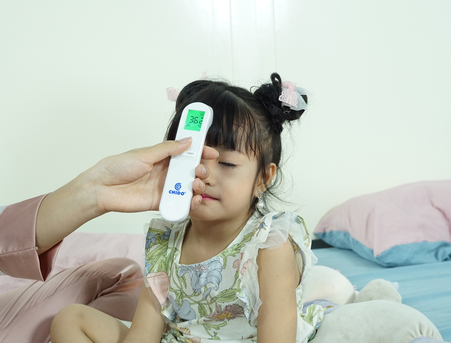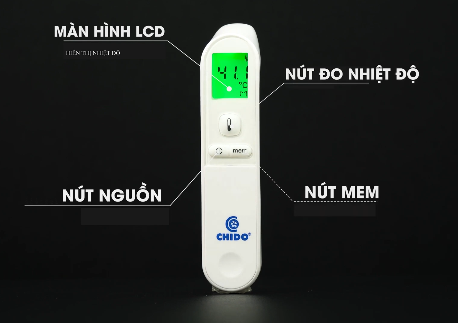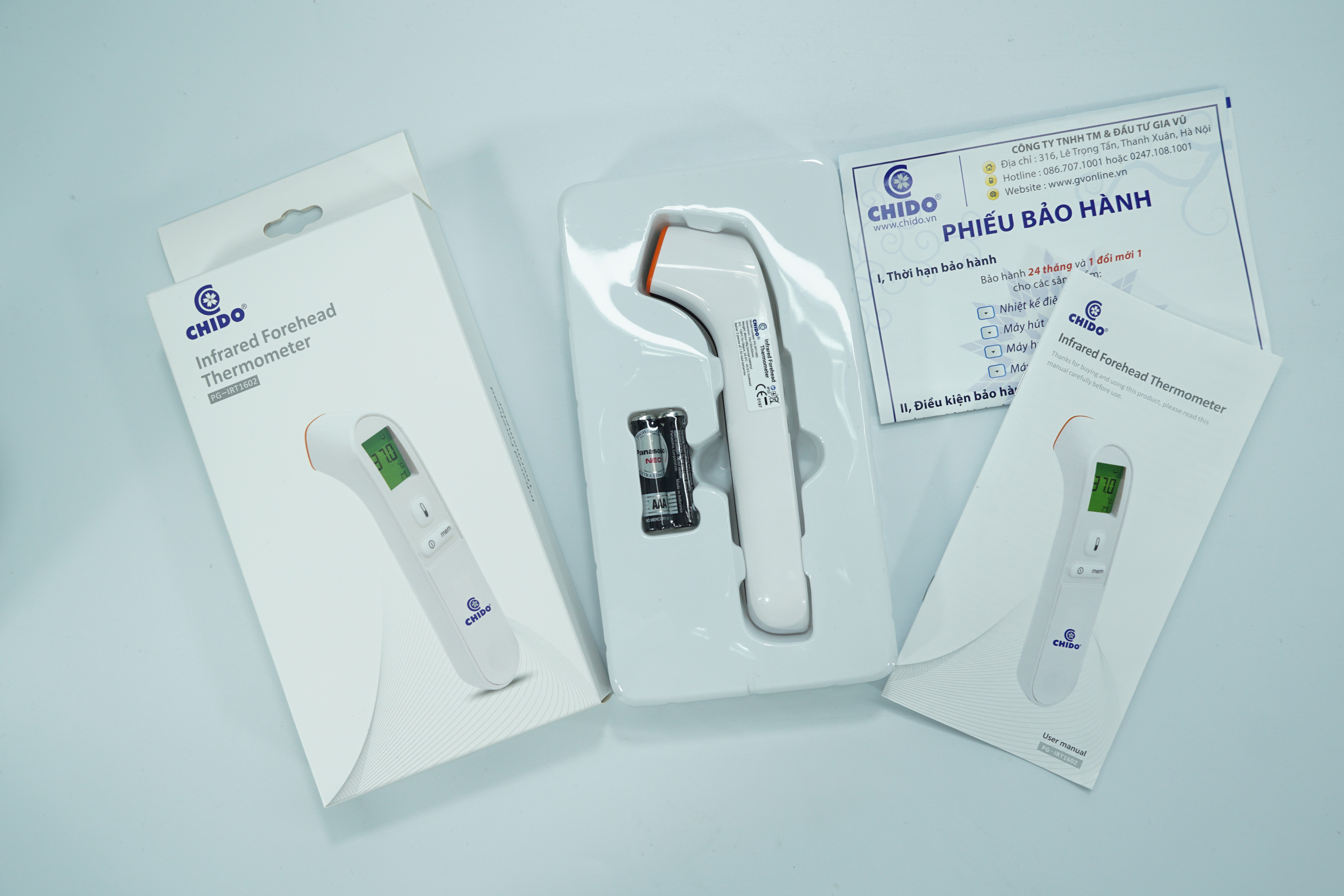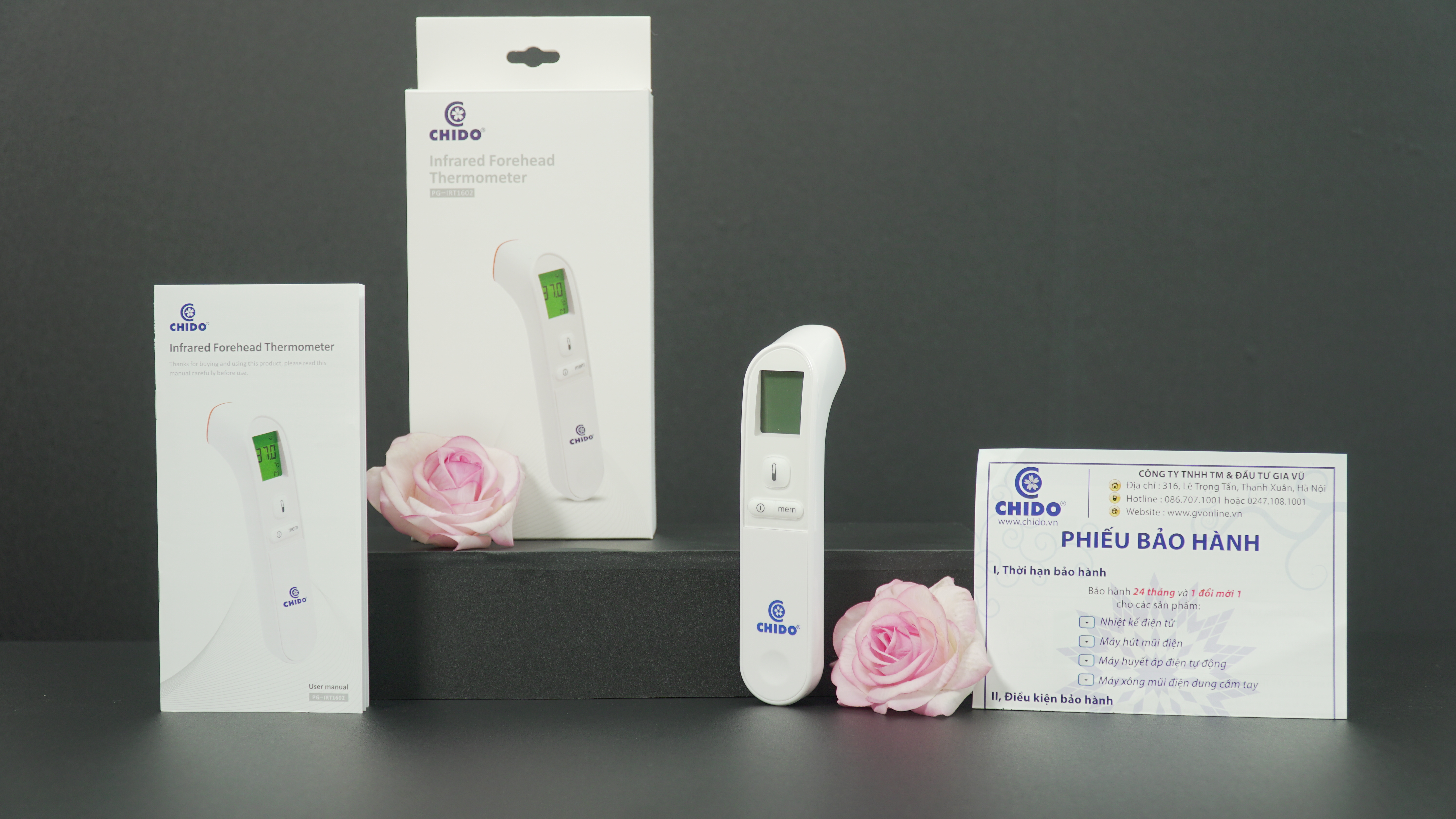 THÔNG TIN NHIỆT KẾ ĐIỆN TỬ HỒNG NGOẠI CHIDO - Công nghệ cảm ứng nhiệt hồng ngoại vùng trán thông minh đo nhiệt độ không cần chạm, cho kết quả nhanh, chính xác trong 1s.