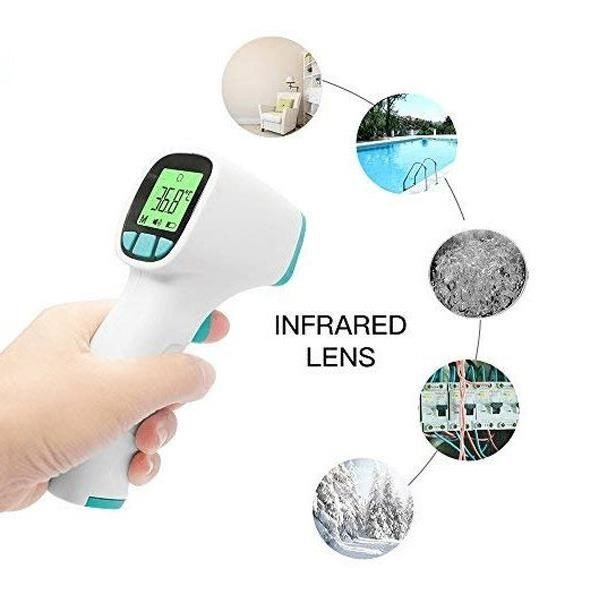 Nhiệt kế điện tử hồng ngoại không tiếp xúc *Công nghệ đo cảm biến tia hồng ngoại cho kết quả chính xác cao *Đo nhiệt độ cơ thể ở trán không tiếp xúc, trả kết
