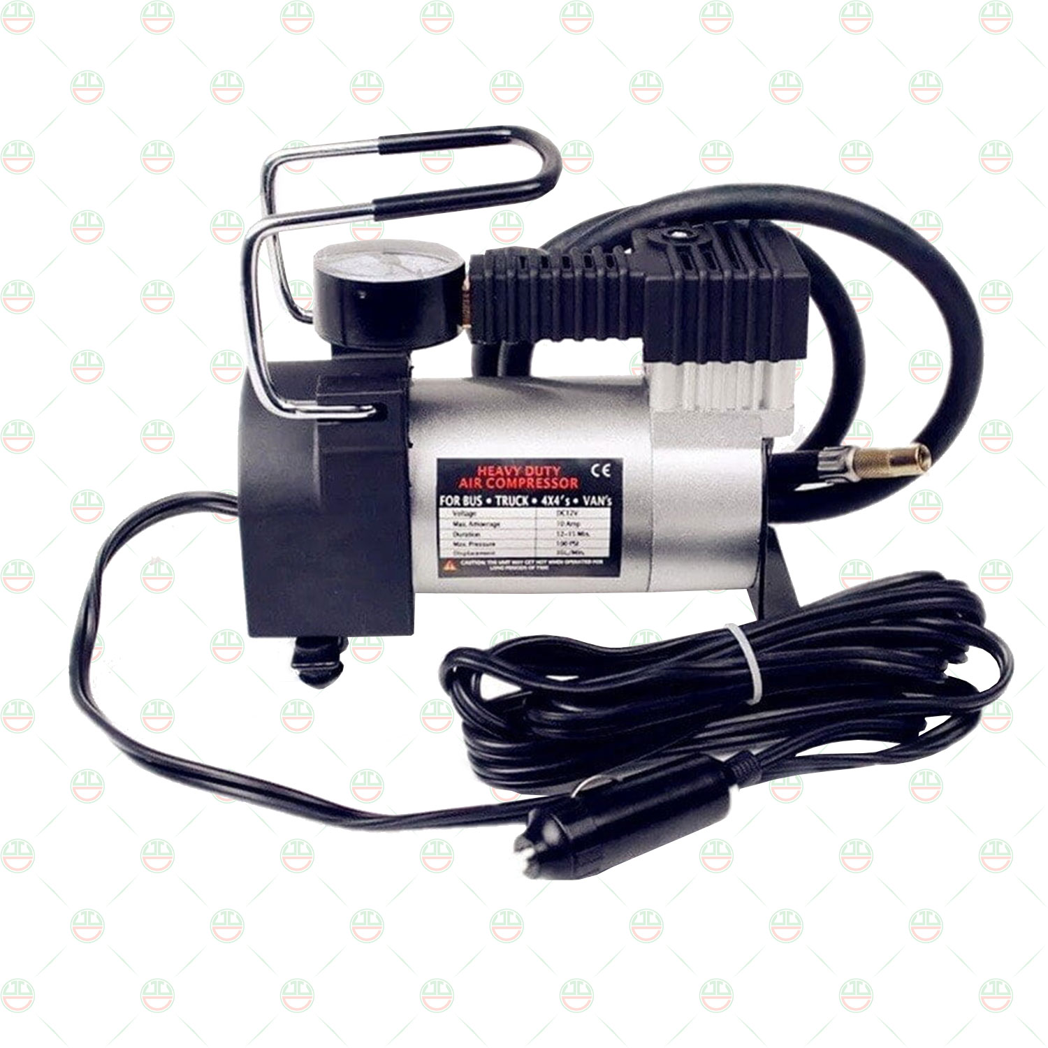 Thông số kỹ thuật máy bơm lốp ô tô mini Điện áp : 12v Điện tối đa : 10A Áp suất tối đa 150 psi ( 10kg/cm2) Lưu lượng không khí: 35L / phútD ây