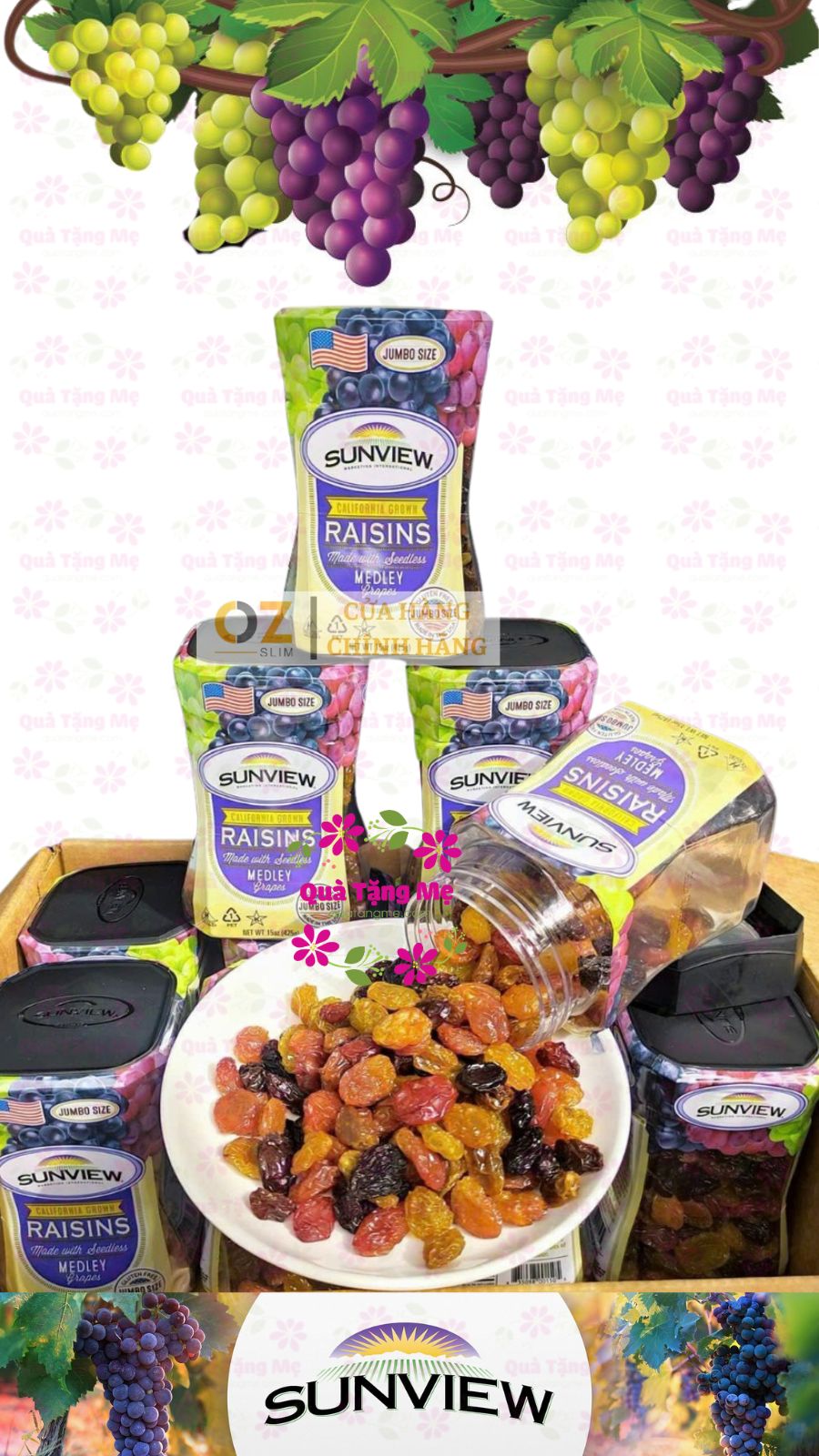- Nho khô Mỹ Sunview 425g là thương hiệu nổi tiếng khắp thể giới với những lợi ích to lớn cho sức khỏe, trong nho khô có chứa hàm lượn cao Vitamin B, C acid folic và nhiều dưỡng chất.