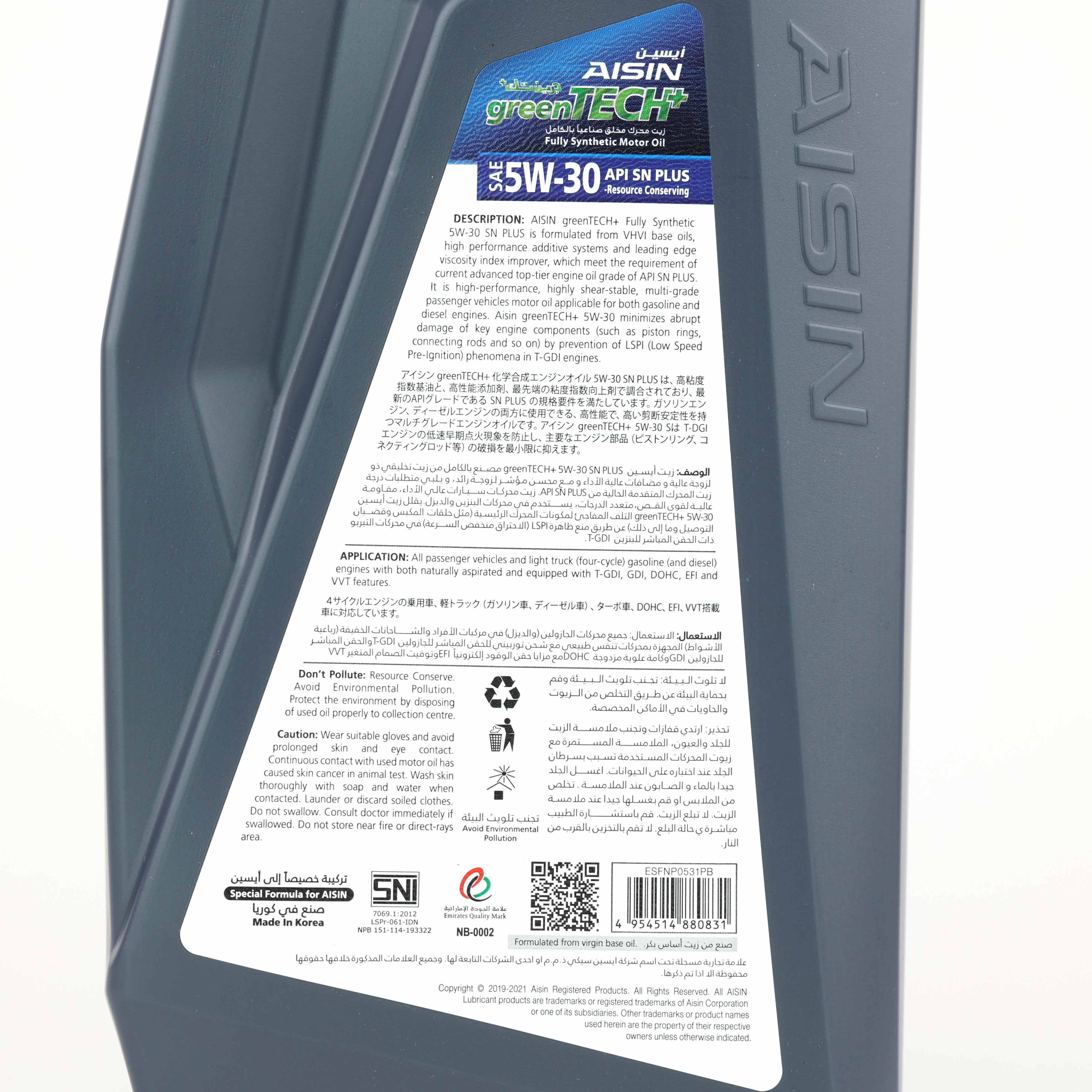 Aisin greenTECH+ Fully Synthetic Motor Oil 5W-30 SN PLUS.