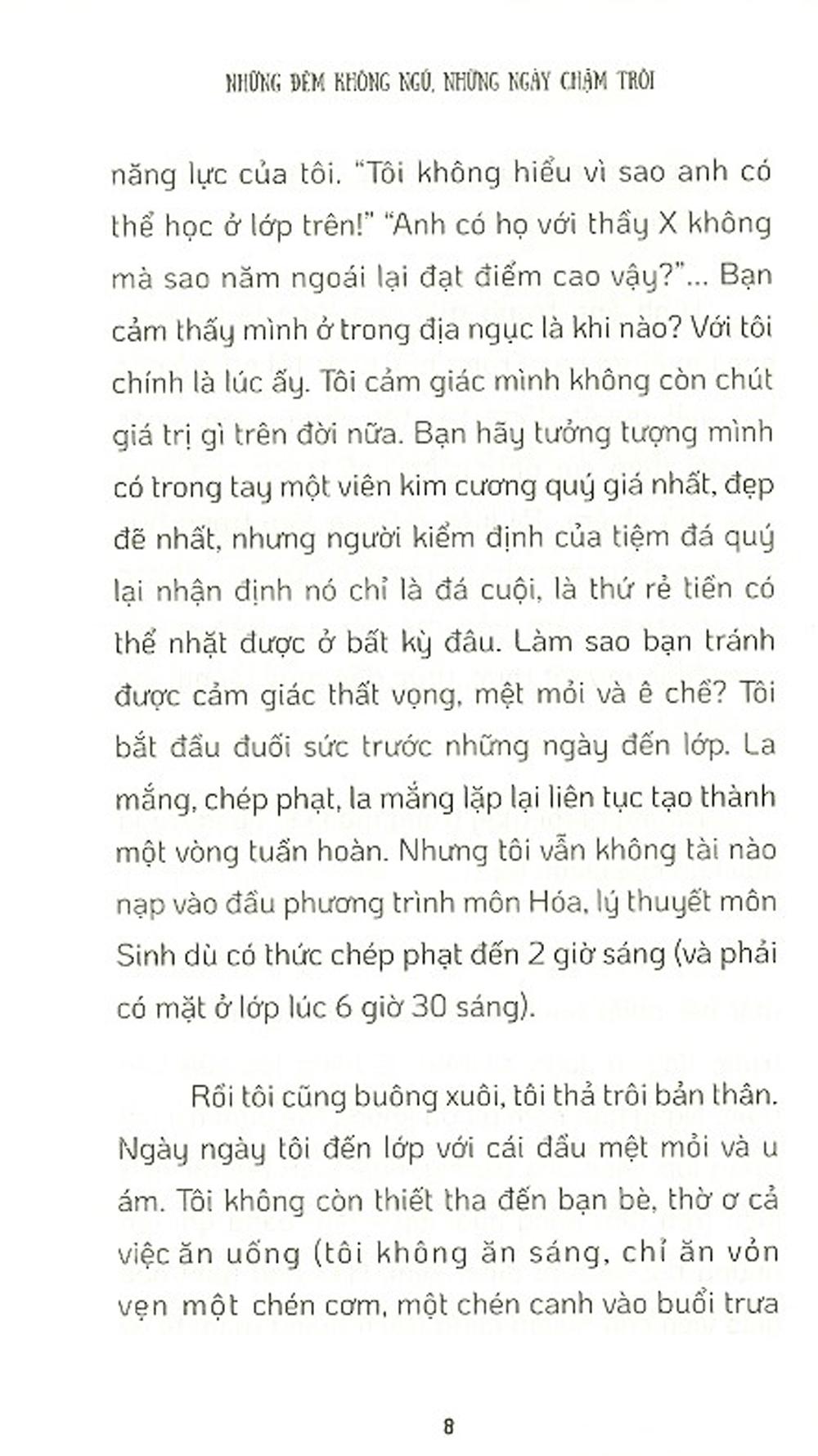 “Nếu thế giới này còn thứ gì giữ bạn lại, là tình yêu thương hay sự quan tâm trong phút giây nào đó, mong bạn đừng gạt nó đi, bạn đừng bỏ qua sự cố gắng của bản thân dù nhỏ bé nhất!”- Khải Trạch. Hóa ra tận cùng nỗi đau và tận cùng sự chống chọi là một lòng tha thiết sống, lòng tha thiết bám rễ ở cuộc đời này như thế.