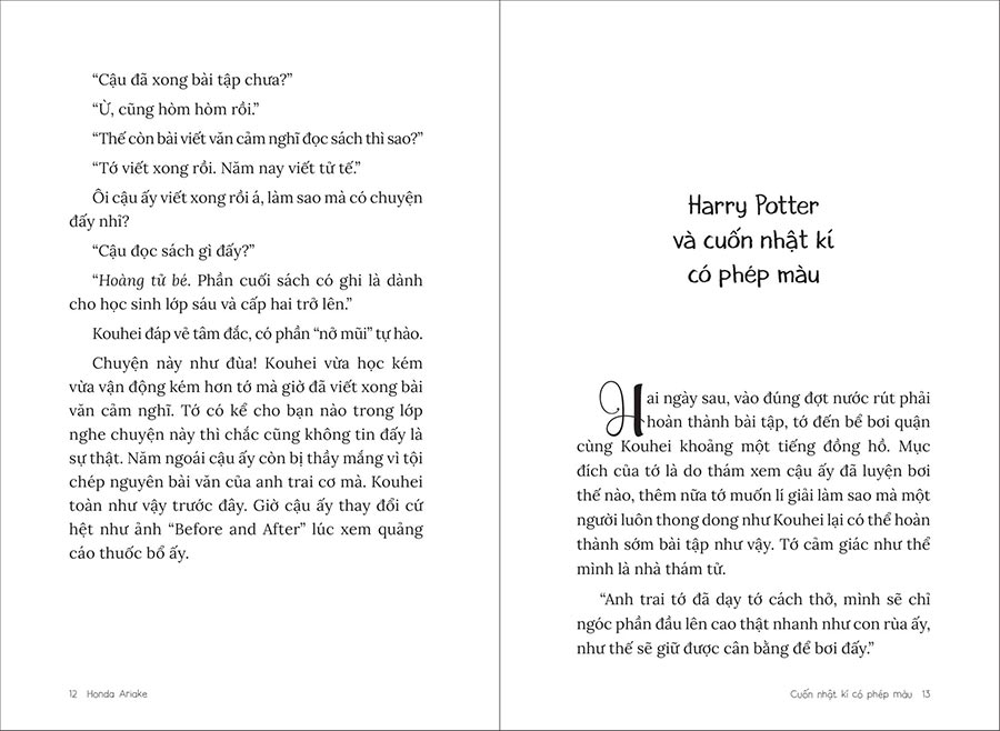 Haruto có rất nhiều cách thực hiện, nào là “Sổ tay tương lai”, “Bảng triển khai lí luận” hay “Kịch bản tương lai hai tầng”, rồi cả nhật kí tuần, đến mức ai cũng lo lắng “Liệu cậu ấy có ôm đồm quá không?” Nếu đọc cuốn sách này mà bạn cảm thấy có hứng thú với một thứ bất kì nào trong các thứ ấy, bạn hãy thử làm theo xem thế nào nhé. Tôi tin, dần dần bạn sẽ tìm ra mẫu mục tiêu dễ viết với mình, và hãy làm “Sổ tay tương lai” theo phong cách riêng của bạn nhé.