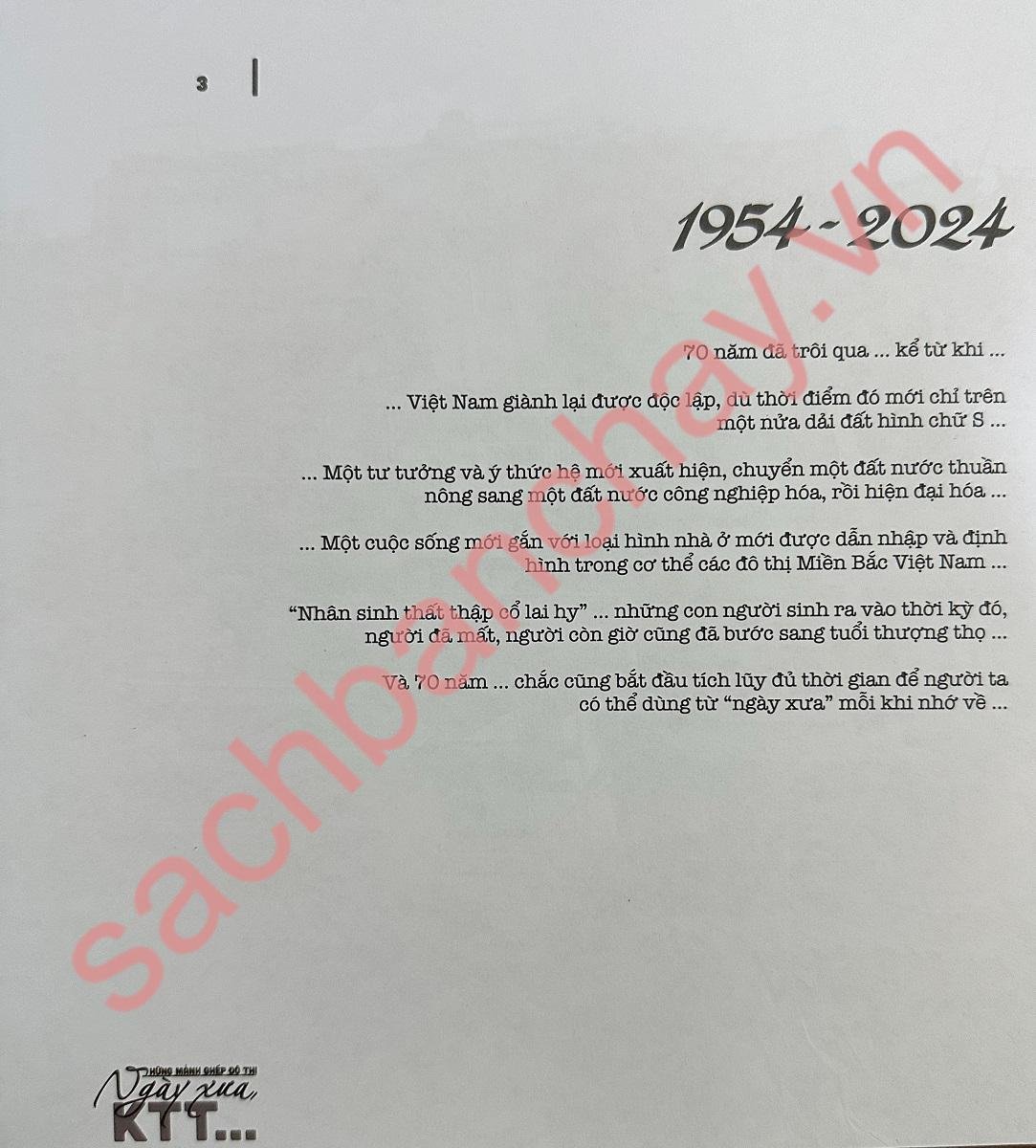 KHU TẬP THỂ – một mô hình cư trú đô thị của (Miền Bắc) Việt Nam, mang tính đại diện và đặc thù đến mức, trong các nghiên cứu của các học giả nước ngoài, thường được nhắc đến như một danh từ riêng và được viết tắt bằng ba chữ cái – KTT. Tuy “nổi tiếng” là thế, nhưng trong xu hướng tái thiết và hiện đại hóa diện mạo đô thị, những KTT đang đứng trước nguy cơ bị phá bỏ để thay thế bằng những dự án mới với những kiến trúc mới, to hơn, cao hơn, và đẹp hơn, mang tính biểu tượng hơn cho sự phát triển của Việt Nam. Và rồi cũng sẽ đến một ngày khi mà các KTT không còn tồn tại nữa, trở thành tiềm thức trong những câu chuyện, bài học về đô thị của tương lai. Liệu lúc đó, những gì mà các thực thể không gian đô thị này đã đóng góp cho nền kiến trúc nước nhà trong một giai đoạn đầy biến động có còn được nhớ đến đầy đủ? Nội dung quyển sách được chuyển tải trong 9 chương theo thứ tự diễn tiến vòng đời của các KTT từ quá khứ, đến hiện tại và tương lai được chia làm ba phần.
