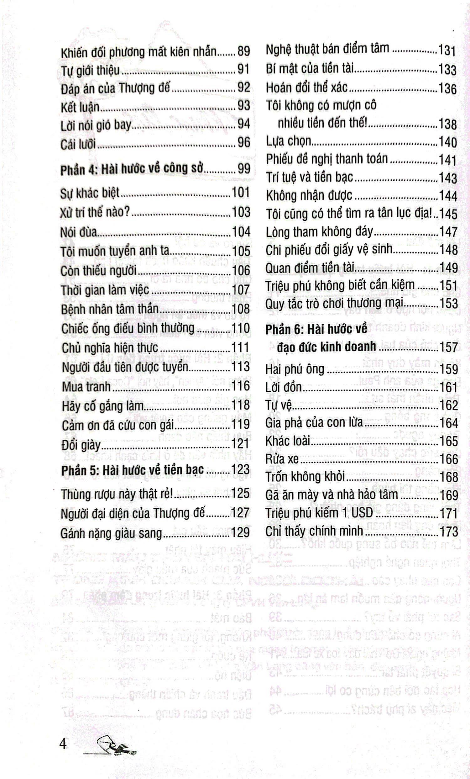 Những mẩu chuyện hài hước trong kinh doanh của người Do Thái với hơn 100 mẩu chuyện đặc sắc là hơn 100 tiếng cười ở nhiều lĩnh vực khác nhau trong đời sống kinh doanh: quản lý, tiếp thị, đàm phán, tiền bạc… Những lời bình đi kèm sẽ giúp bạn gợi mở nhiều suy nghĩ và nhận ra ý nghĩa sâu xa mà từng mẩu chuyện gửi gắm.
