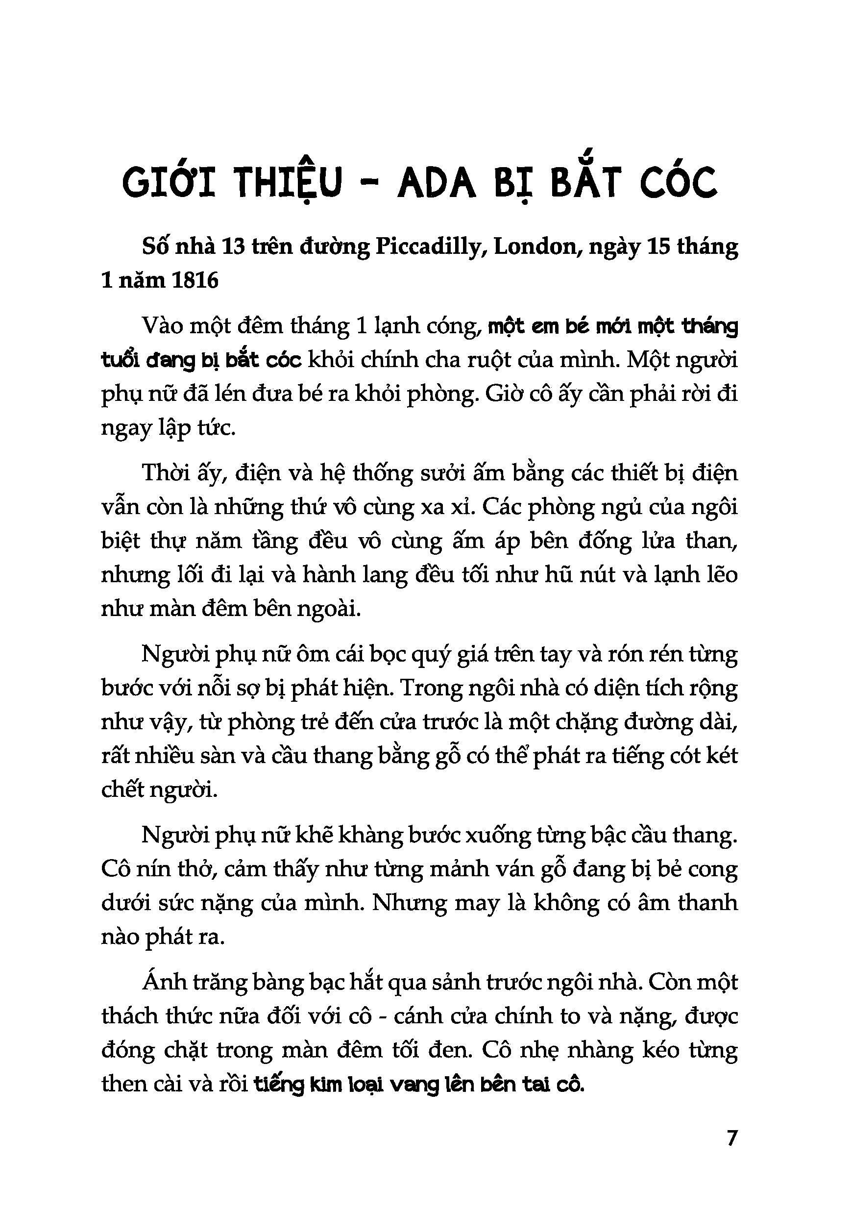 Đọc cuốn sách, bạn sẽ có cơ hội gặp gỡ với Ada Lovelace, nhà toán học với bộ óc đại tài, người đã tiên đoán được sức mạnh của máy vi tính từ rất lâu, trước khi chúng được phát minh ra.