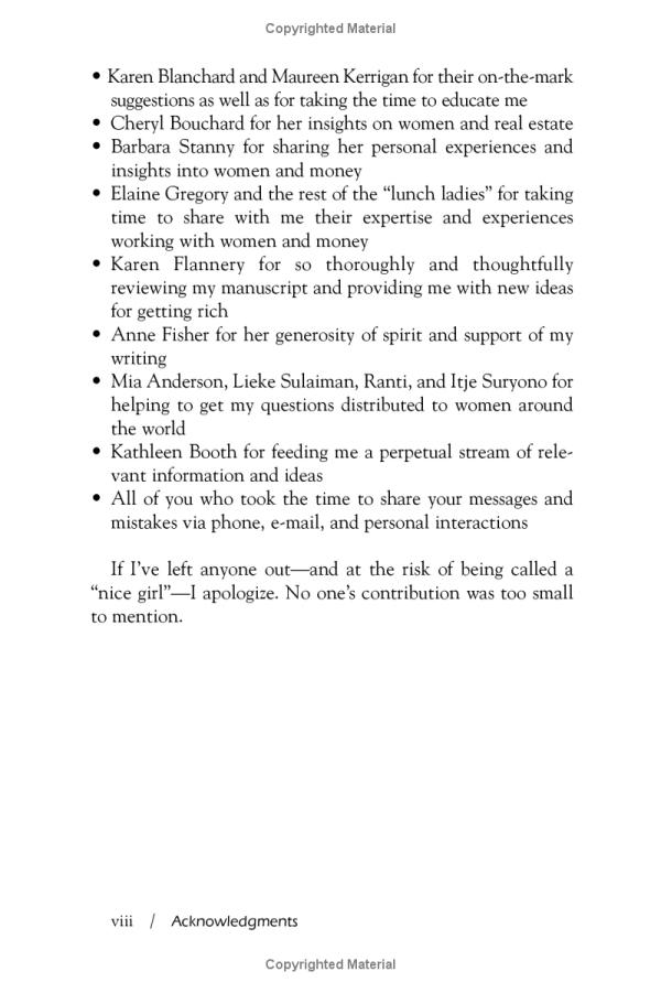 In NICE GIRLS DON'T GET RICH, Dr. Frankel offers women financial and investment advice for succeeding in life. Although women may not know it, certain behaviors and habits that they learned when they were girls
