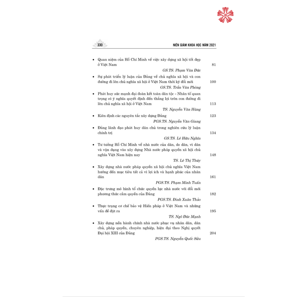 Niên Giám Khoa Học Năm 2021 Bộ sách gồm 4 cuốn: 1. Tập I - Những vấn đề chính trị 2. Tập II - Những vấn đề kinh tế 3. Tập III - Những vấn