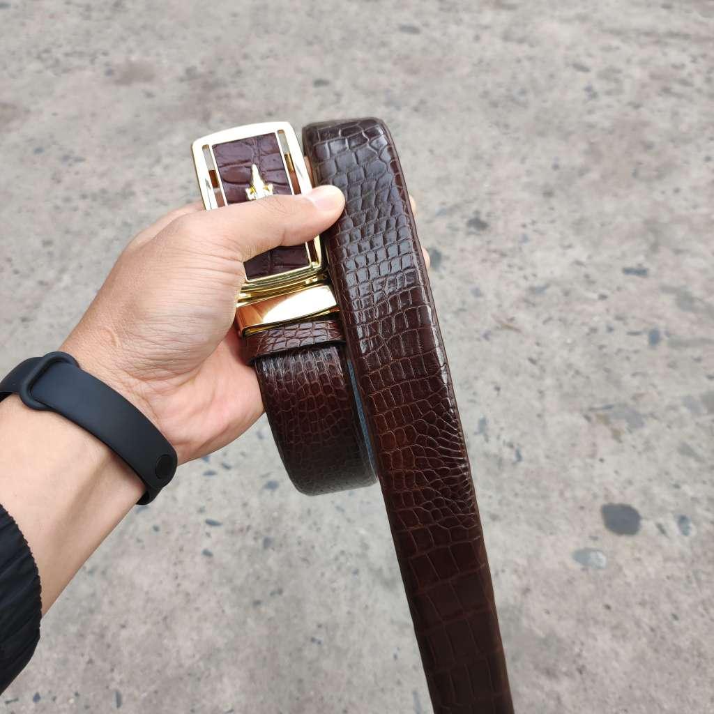 Thắt lưng da cá sấu nguyên tấm bản rộng phù hợp với bụng bia hoặc những người vóc dáng lớn Da bụng cá sấu trơn rất dễ sử dụng!