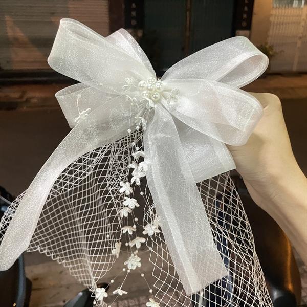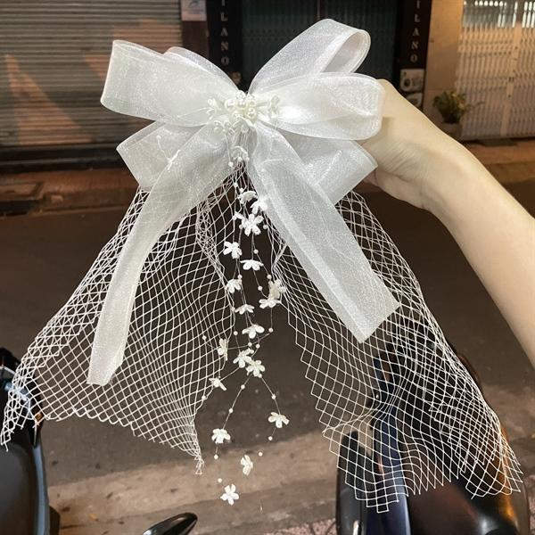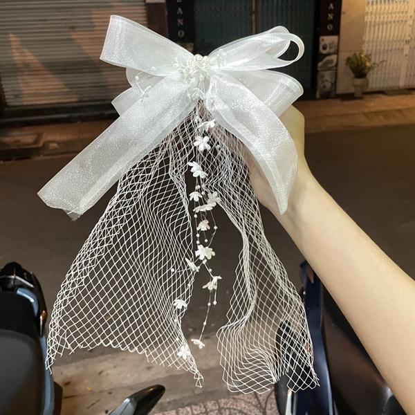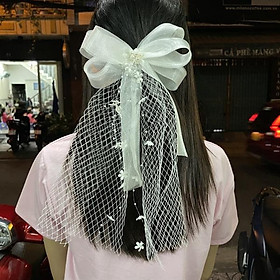 ✨Nơ cài tóc vải voan gắn lưới cách điệu đính dây hoa thả mẫu mới t12/2023