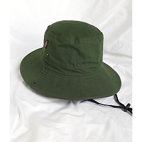 Vải Kaki dày dặn nhưng không nóng vì là 100%cotton. Có dây đeo không lo gió bay. Nút bấm kim loại 2 bên vành nón để bẻ lên cho ngầu luôn. Shop nhận thêu logo