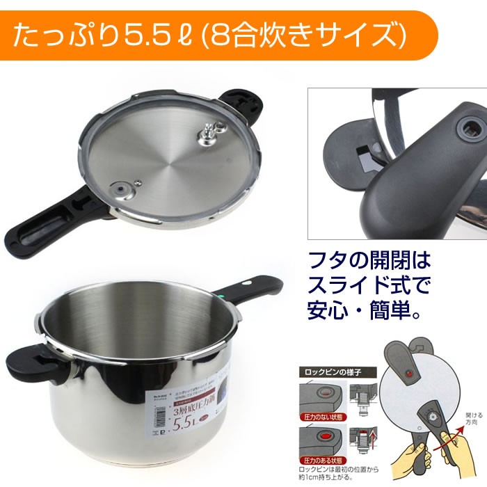 Thông tin sản phẩm - Cấu trúc 3 lớp giúp truyền nhiệt đều. - An toàn với cấu tạo 3 van bảo vệ. - Tay cầm và quai nồi chịu nhiệt, không bị bỏng tay