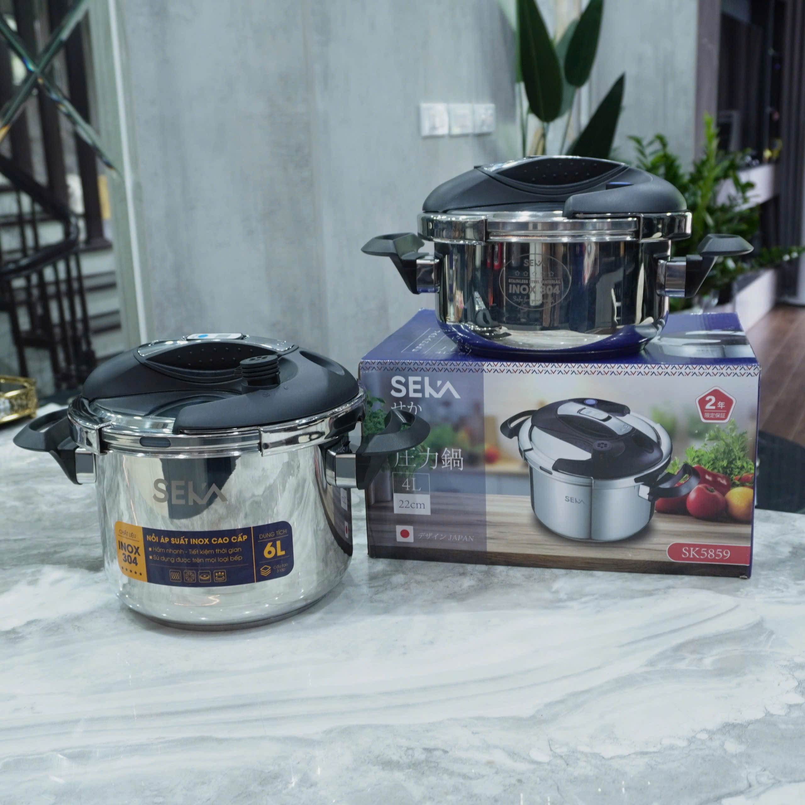 Nồi áp suất từ Seka SK5859 inox 304 dung tích 4L và 6L tặng kèm vung kính, Dùng được mọi loại bếp