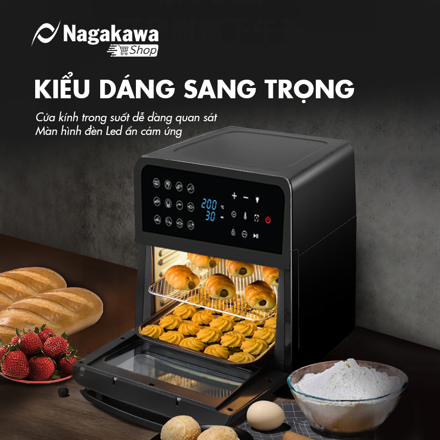 Nồi chiên không dầu Nagakawa NAG3307 bao gồm 12 chương trình nấu cài đặt sẵn, bao gồm: Làm nóng | Khoai tây chiên | Bánh mì | Cánh gà | Thịt bò | Bánh ngọt | Tôm | Cá | Pizza | Rau | Gà quay | Gà nướng
