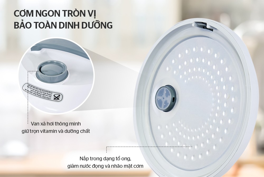 Bên cạnh đó, nồi cơm còn có van thoát hơi thông minh, điều khiển chính xác quá trình thoát