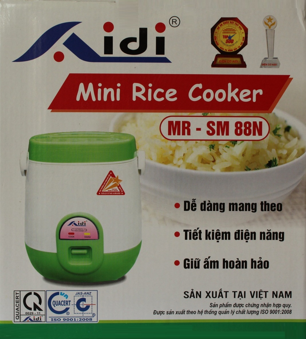 Nồi cơm điện là sản phẩm không thể thiếu trong mỗi gia đình. Với một chiếc nồi cơm điện độc đáo như Nồi Cơm Điện Cặp Lồng Mini Thân Nhựa Aidi MR-SM 88N (0,6 lít) - Màu Ngẫu Nhiên - Chính Hãng, việc nấu nướng sẽ trở nên dễ dàng và thú vị hơn rất nhiều. Không những thế, lòng nồi được phủ lớp chống dính Whitford (USA), mâm nhiệt lớn tỏa nhiệt đều và công nghệ làm chín cơm từ hơi nước sẽ giúp bữa cơm gia đình thêm thơm ngon, tròn vị.Nếu bạn là một người yêu thích phong cách trẻ trung, độc đáo thì chiếc Nồi Cơm Điện Cặp Lồng Mini Thân Nhựa Aidi MR-SM 88N (0,6 lít) - Màu Ngẫu Nhiên - Chính Hãng chính là lựa chọn vô cùng hoàn hảo.
