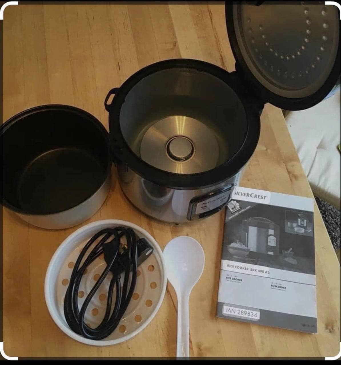 - Nồi cơm điện Silvercrest có thể làm được mọi thứ mà một chiếc nồi cơm điện cần có. Cơm được nấu trong nồi cơm điện mà không bị cháy hoặc quá chín. Bạn thậm chí có thể sử dụng bộ phận chèn của nồi hấp để sơ chế rau hoặc thịt một cách nhẹ nhàng.
