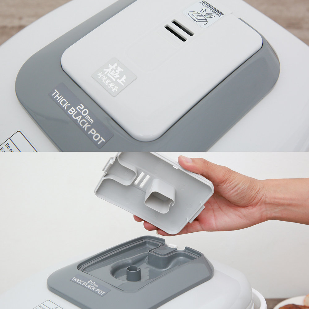 ️ Hẹn giờ lên đến 24 tiếng, với khóa an toàn ️ Chất liệu: + Cốc đong gạo, muỗng múc cơm, xửng hấp bằng chất liệu nhựa PP an toàn khi tiếp xúc thực phẩm