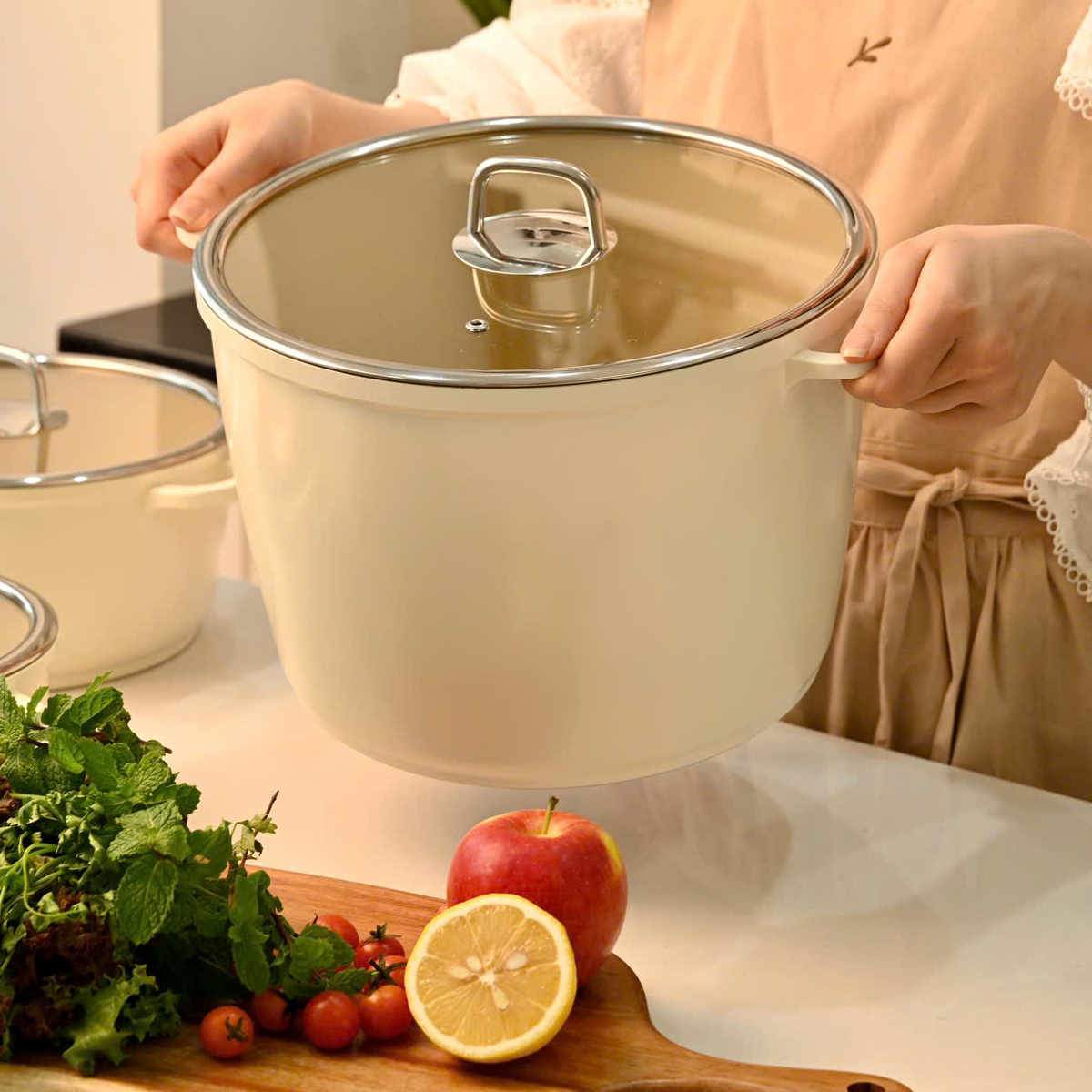 Nồi chống dính phủ gốm là sự lựa chọn hoàn hảo để chế biến nhiều món ăn ngon như nấu cháo, nấu phở, hầm xương, kho thịt, chiên xào, hấp, nấu súp, luộc gà, phù hợp cho bữa ăn gia đình, nhà hàng, tiệc tùng.