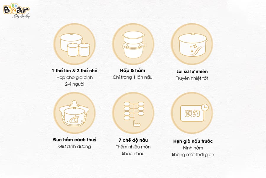 Nồi nấu chậm 1.5L Bear sở hữu nhiều tính năng và công dụng vượt trội, đã nhanh chóng nhận được sự săn đón nhiệt tình từ cộng đồng người tiêu dùng Việt. Bên cạnh đó, thiết kế