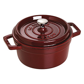 - Nồi tròn Staub bằng gang đúc tráng men - Nồi Tròn Staub – Màu Đỏ Lựu - Thiết kế sang trọng, có thể đặt ngay trên bàn ăn sau khi nấu. - Lớp phủ màu