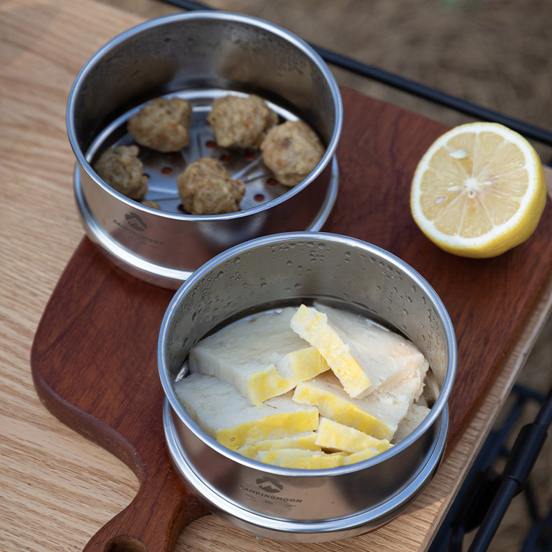 cắm trại Sierra mini Campingmoon BKS-S362 chất liệu Inox 304 không gỉ sét, dễ lau chùi. Có thể xếp chồng nhiều lớp nhiều không gian hơn và hấp nhiều món ăn cùng 1 lúc. Thiết kế
