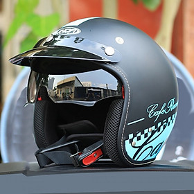 - Phong cách thiết kế: mũ kiểu 3/4 kèm kính dài, mũ được thiết kế dáng tròn, đi kèm 2 miếng ốp má, giúp tăng thêm hiệu quả bao phủ, bảo vệ khuôn mặt. -