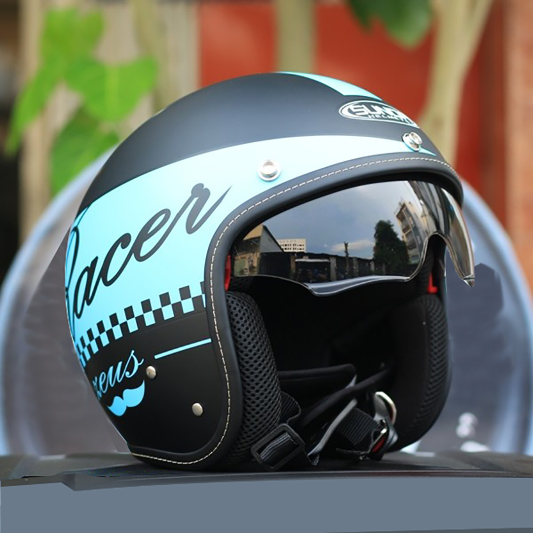 Mũ bảo hiểm nửa đầu có kính Sunda 180B tem là phụ kiện không thể thiếu khi đi xe mô tô, xe máy, mang lại sự an toàn và phong cách thời trang cho người sử