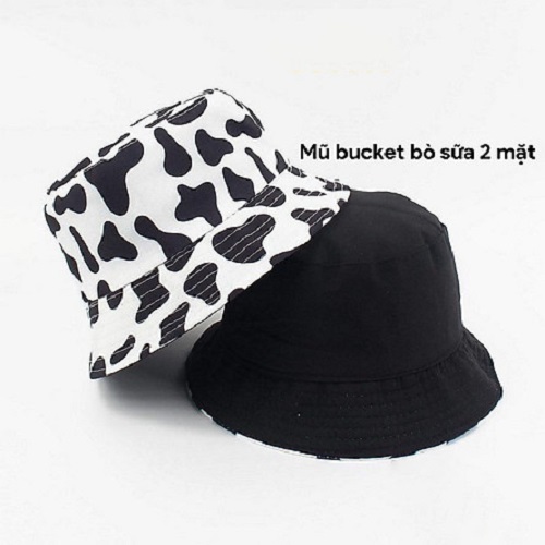 Mũ vành 2 mặt, bucket hat họa tiết bò sữa dễ thương