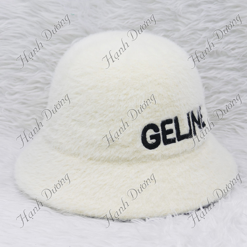 ✨Nón bucket cúp lông xù thêu chữ Geline, vành rộng 5cm, phong cách thời trang điệu đà