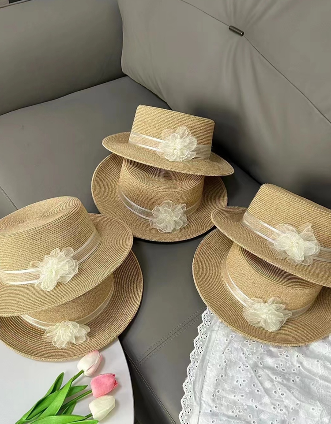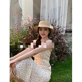 Mũ cói rơm vành phẳng nữ mùa hè phiên bản Hàn Quốc chống nắng UV cho kỳ nghỉ Nón đi biển Paris thời trang hàng đầu Pháp Chất liệu cói