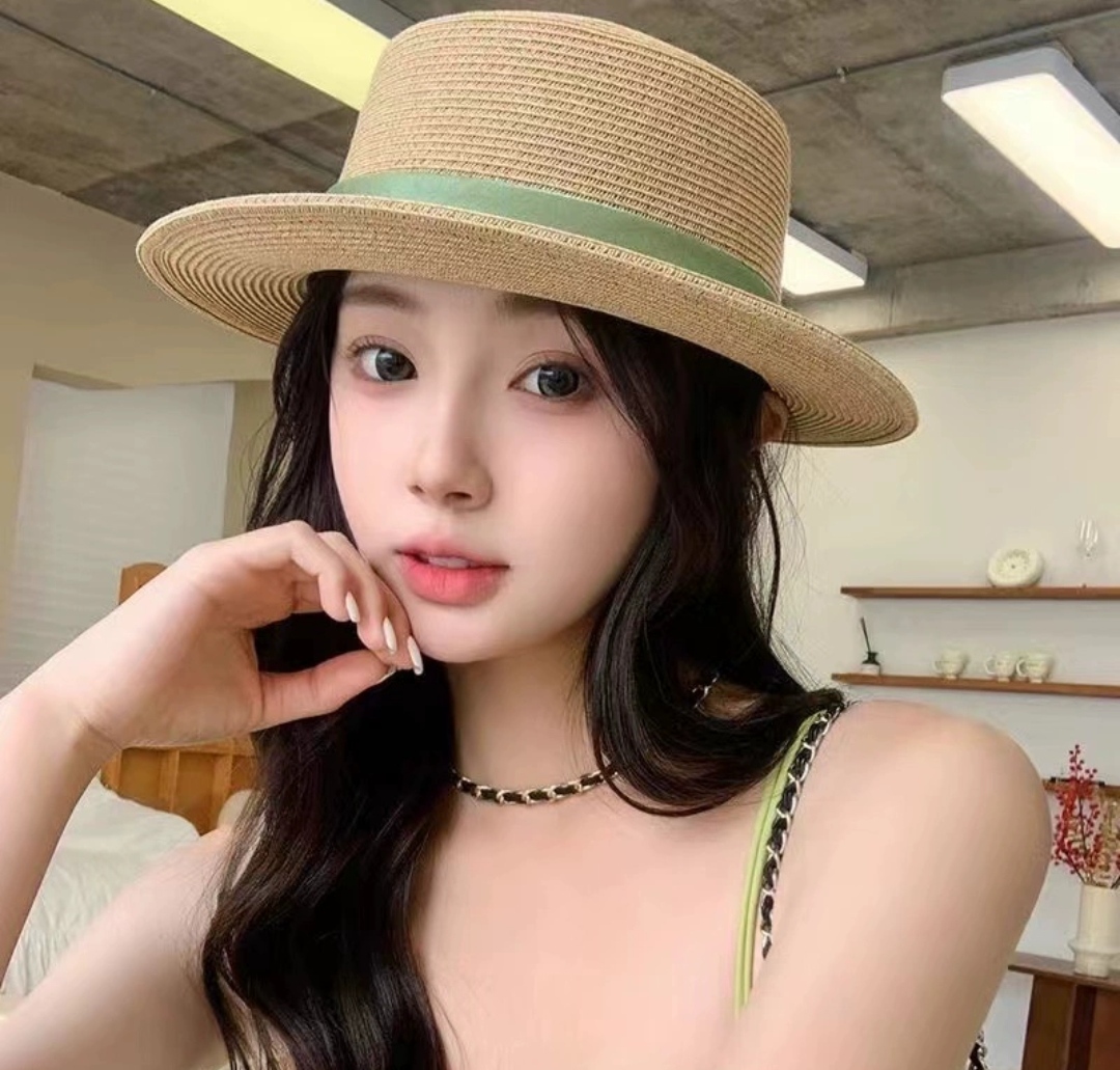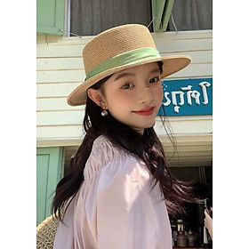Mũ cói rơm vành phẳng nữ mùa hè phiên bản Hàn Quốc chống nắng UV cho kỳ nghỉ Nón đi biển Paris thời trang hàng đầu Pháp Chất liệu cói